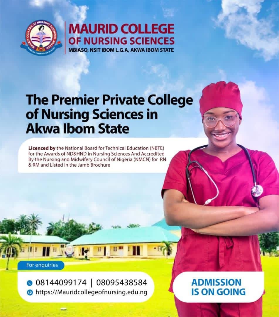 The Maurid College of Nursing Sciences, Mbiaso, Nsit Ibom Local Government Area, Akwa Ibom State, the first private College of Nursing Sciences in the state, has commenced admission into its programmes for the 2025/2026 academic session.