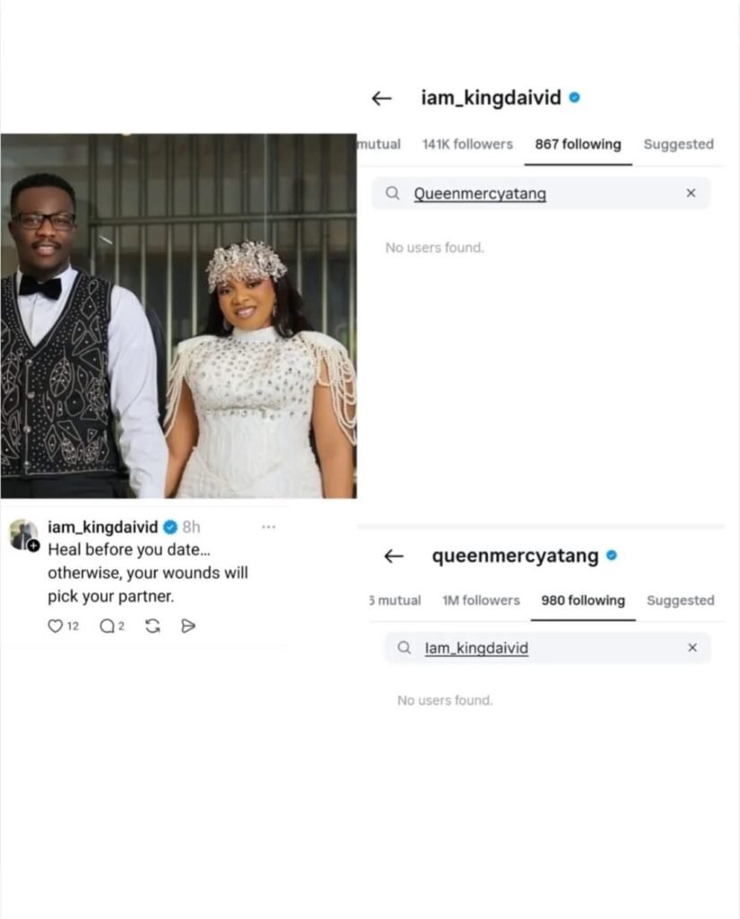 Big Brother Naija star, Queen Mercy Atang and her husband David Oyekanmi appear to be dropping hints that their marriage is in crisis.