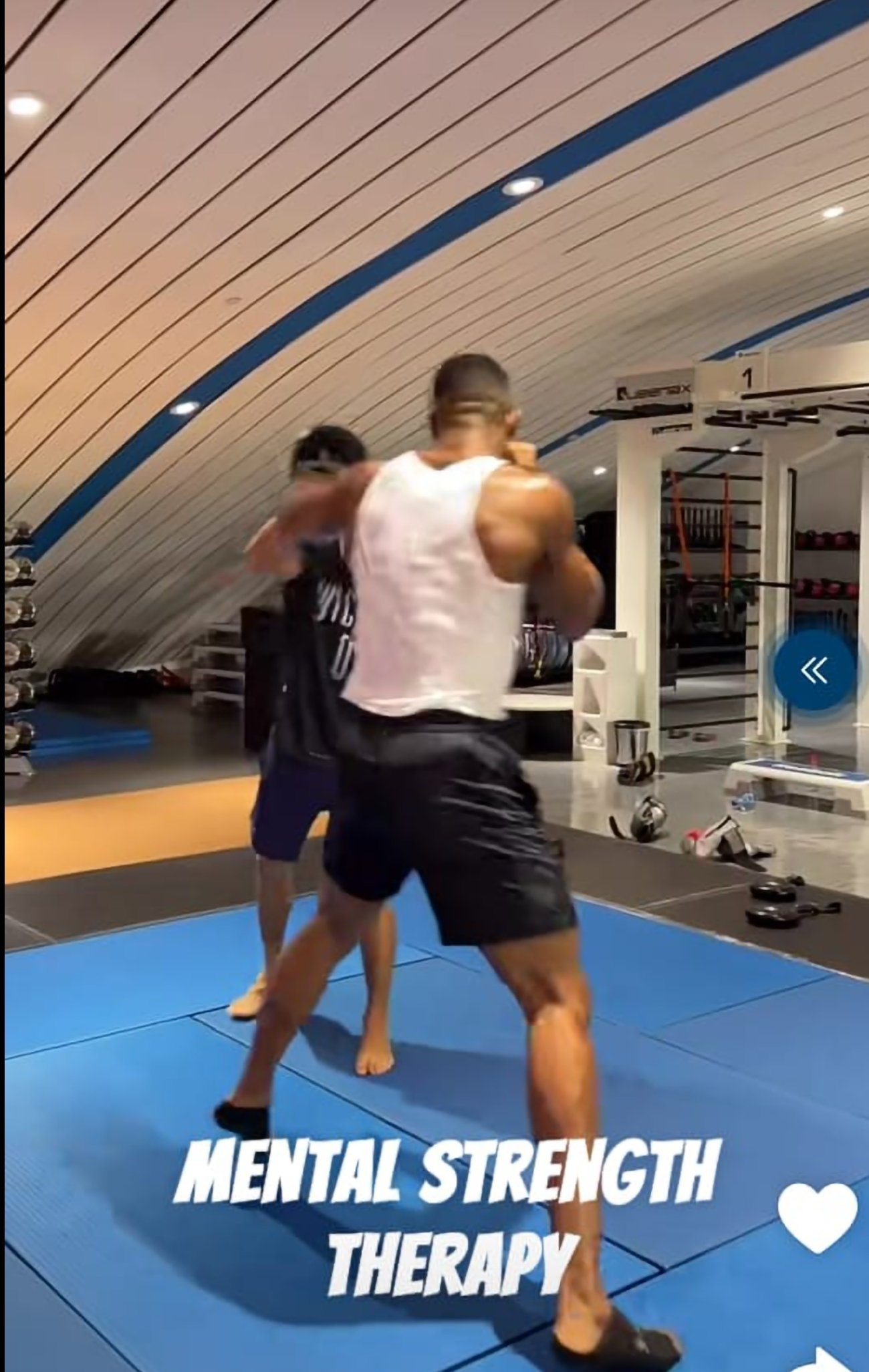Joshua shared a Snapchat video of himself hitting pads with the caption “mental strength therapy,” signaling his gradual return to routine. Other clips showed him cycling on an exercise bike and swimming, all compiled into a short montage.
