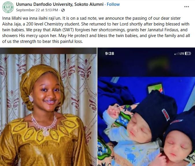 Aisha reportedly died on Monday, September 22, 2025, shortly after giving birth to twin babies.