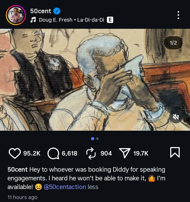 Soon after the ruling was announced, the rapper, whose real name is Curtis Jackson, took to X to taunt his longtime rival. He joked about stepping in for Diddy at one of his upcoming appearances.