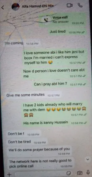 The chat reportedly shows Ashabi confessing her feelings for Kenny to an Islamic cleric, prompting Portable to accuse her of betrayal despite his support for her career.