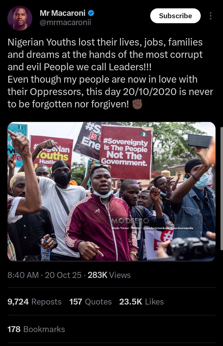 His post serves as a powerful reminder of the sacrifices made by young Nigerians and the ongoing demand for justice and accountability.