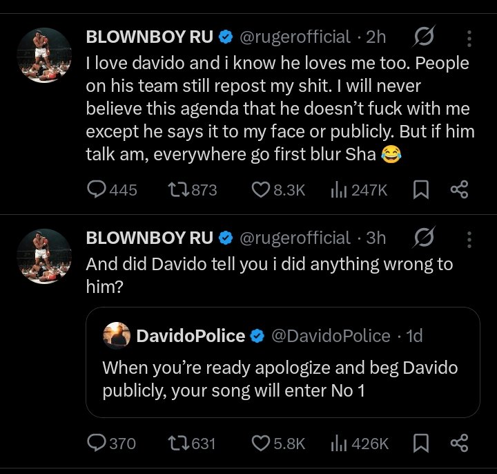 Ruger Dismisses Claims Of Rift With Davido In New X Posts