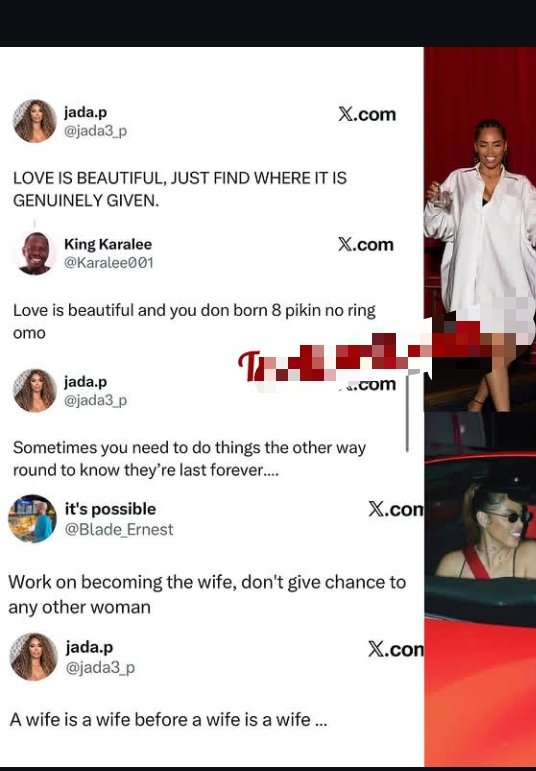 Another user advised her to focus on becoming a wife and avoid giving room to another woman. In response, Jada wrote, “A wife is a wife before a wife is a wife …”