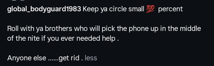 Ricky’s post read: “Keep ya circle small 100 percent. Roll with ya brothers who will pick the phone up in the middle of the nite if you ever needed help. Anyone else……get rid.”