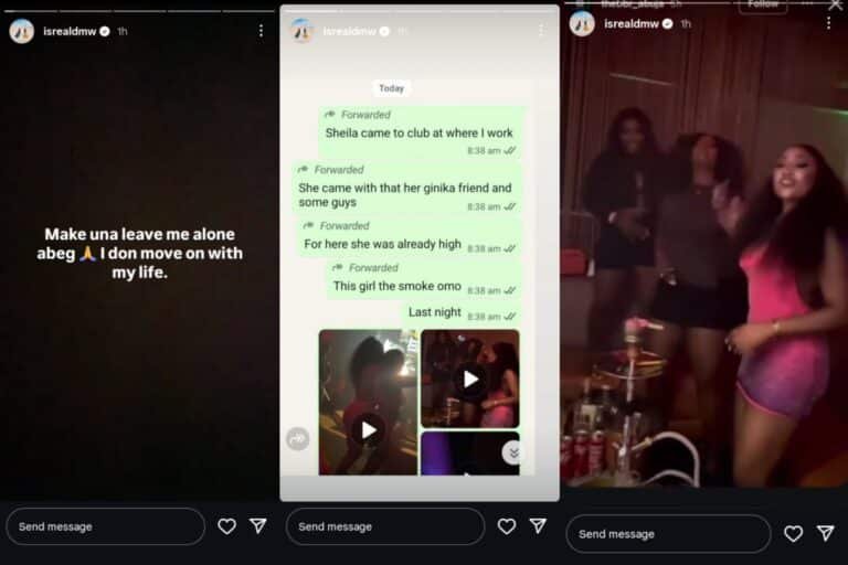 He shared a screenshot on his Instagram story showing a message from an unknown sender, who said Sheila was at the club where he works with friends and some men, and was caught smoking.