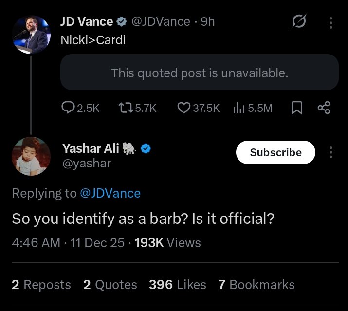 The exchange started after Nicki Minaj briefly posted — then deleted — a message saying “Vance > Rants.” The mention got Vance’s attention, and he responded with a direct comparison: “Nicki > Cardi B.” He offered no follow-up explanation, and Cardi B has not reacted to his choice.