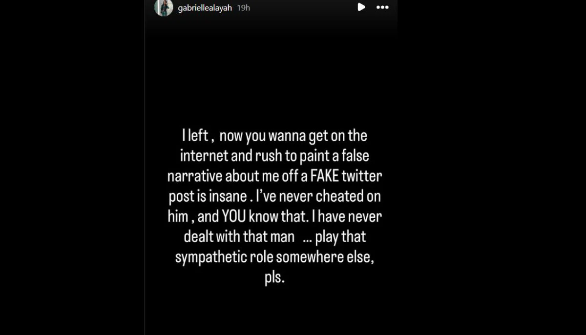 Alayah addressed the breakup rumors on social media, writing: “I left, now you wanna get on the internet and rush to paint a false narrative about off a FAKE twitter post is insane. I’ve never cheated on you, and YOU know that. I have never dealt with that man… play that sympathetic role somewhere else pls.”