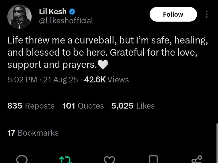 Nigerian singer Lil Kesh has addressed fans for the first time following a recent attack, assuring them that he is safe and recovering.
