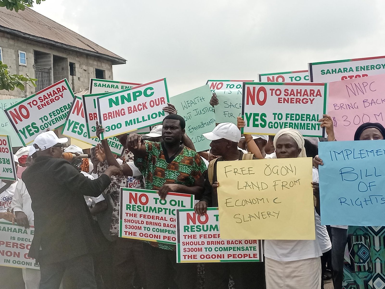Speaking for the group, the Executive Director of the Ogoni Liberation Initiative, Douglas Fabeke, said oil work was resuming in communities destroyed between 1993 and 1998, where over 300 people died and many residents remain displaced.