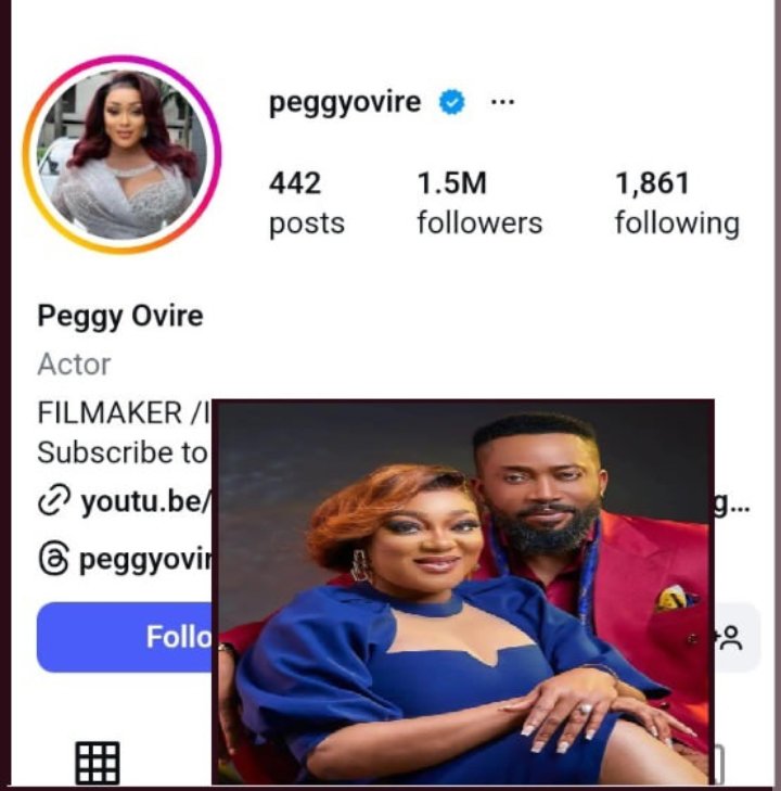Nollywood star Peggy Ovire has sparked rumors of a possible split from her husband, Frederick Leonard, after removing his surname from her Instagram profile. Once known as Peggy Ovire Leonard, the actress now goes simply by Peggy Ovire, raising questions about the status of their marriage.