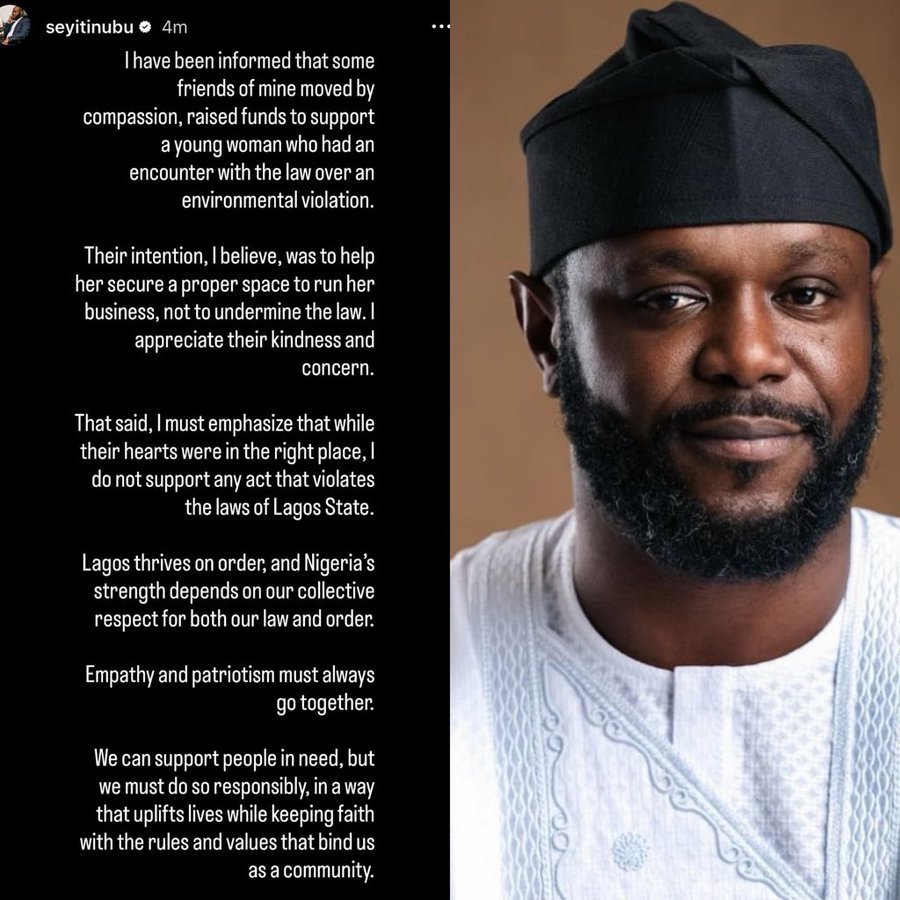 However, in a statement shared on his Instagram page, Seyi Tinubu denied any direct involvement in the donation and reaffirmed his commitment to upholding law and order in Lagos.