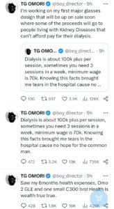 Battling kidney disease, Omori lamented the high price of dialysis compared to Nigeria’s minimum wage, admitting the situation moved him to tears.
