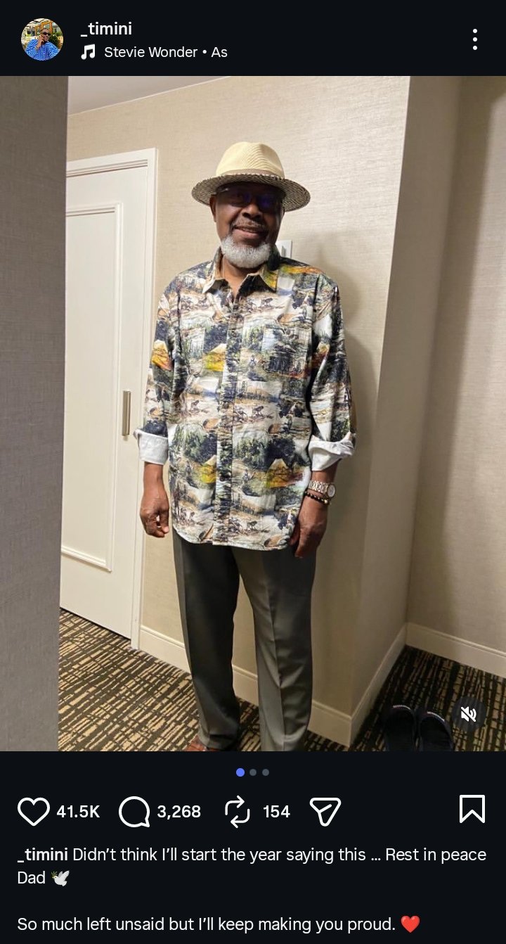 Timini took to social media to post touching photos of his late father, alongside a heartfelt message that captured his grief and longing. “Didn’t think I’ll start the year saying this … Rest in peace Dad 🕊️ So much left unsaid but I’ll keep making you proud,” he wrote.