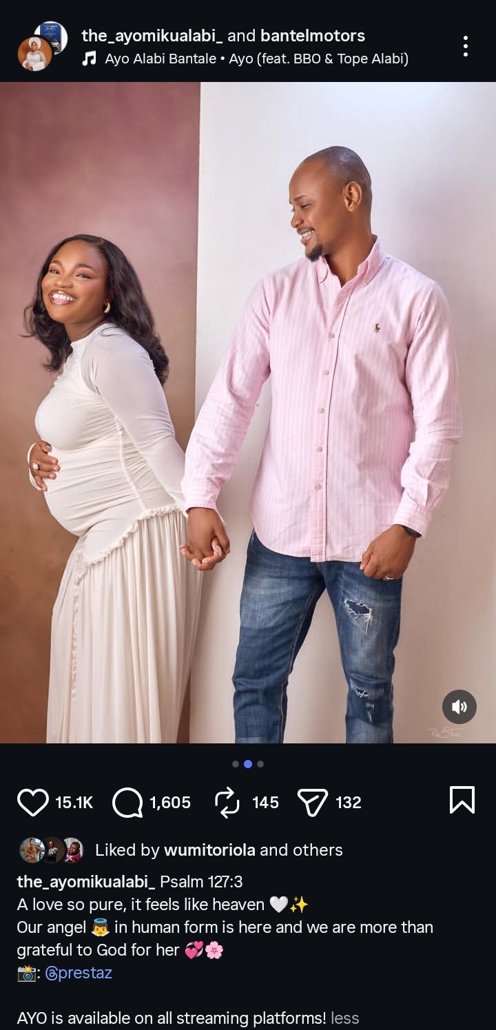 Tope Alabi’s daughter has welcomed her first child with her husband, bringing a wave of joy to the family of the celebrated Nigerian gospel singer.