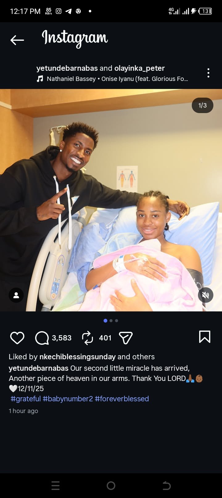 “Our second little miracle has arrived. Another piece of heaven in our arms. Thank You LORD 🙏🏾👶🏾🤍 12/11/25.”